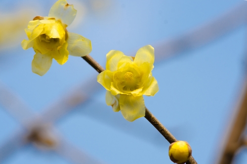 目前木蘭園中,已經盛開的早花品種有2株,一株花色金黃,為素馨蠟梅,還有一株是紅心的尖瓣蠟梅,另外,在蘭室的庭院內有一株圓瓣的素心蠟梅也已盛開;還有5、6株早花品種即將盛開。愛“梅”(蠟梅)的市民,元旦假期可趕早賞“梅”了。不過真正的梅花花期還早,要到2月份才能開放。早花蠟梅開得較早,目前蠟梅林中的不少蠟梅枝頭還綴滿了綠葉,因此目前還可以花葉同賞。不過到中晚花蠟梅盛開時,葉子該掉光了。