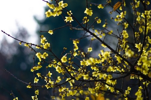 冬至初聞蠟梅香 綠葉掩映黃花嬌艷
