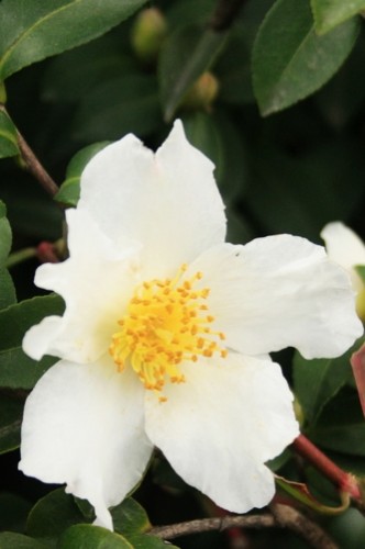茶梅花型有單瓣、二層花瓣和牡丹型,花期有早、晚之分,最早的11月中下旬就開了,整個花期可持續一個多月。有些中、晚期品種會在12月至1月間開放,由于1月的氣溫較低,有時由于寒潮來襲而中斷開花,開花現象變得時續時斷。但在寒冷季節里由于其他花卉處于休眠和落葉狀態,能開花的常綠灌木顯得非常艷麗和醒目。