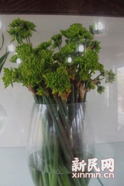 圖說:綠水仙淡綠色的花瓣小巧而密集,與傳統(tǒng)品種迥然而異。新民網(wǎng)記者 袁蓉 攝