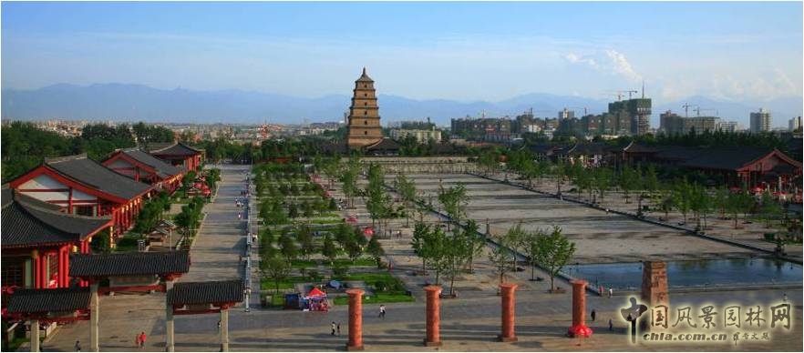 有四大開放空間--大雁塔周邊千畝博物苑,大唐不夜城,大唐文化藝術長廊,1000畝湖面的絲綢之路風情園。