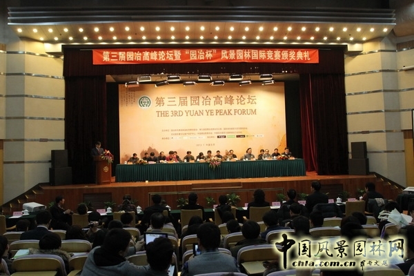 第三屆園冶高峰論壇于2013年1月12日在北京新大都飯店成功舉辦。論壇主題為“生態(tài)文明,美麗中國(guó)--傳承園冶造園文化遺產(chǎn),建設(shè)中華民族美麗家園”,同期舉行了園冶杯風(fēng)景園林國(guó)際競(jìng)賽以及第九屆園博會(huì)設(shè)計(jì)師廣場(chǎng)的頒獎(jiǎng)儀式。十屆全國(guó)人大常委會(huì)副委員長(zhǎng)、文化部華夏文化遺產(chǎn)保護(hù)中心名譽(yù)主席顧秀蓮蒞臨大會(huì),開幕式上住房和城鄉(xiāng)建設(shè)部副部長(zhǎng)、黨組成員仇保興為第三屆園冶高峰論壇發(fā)來(lái)了賀信。