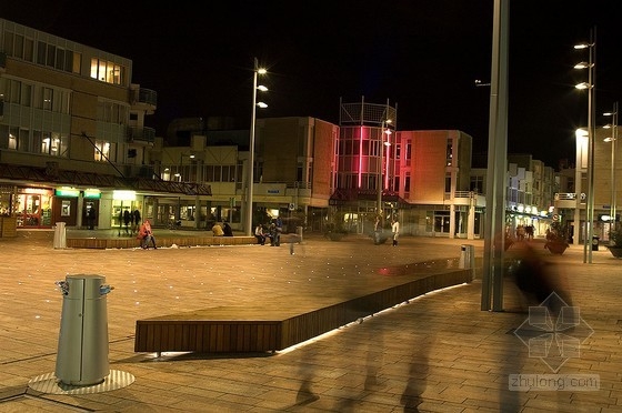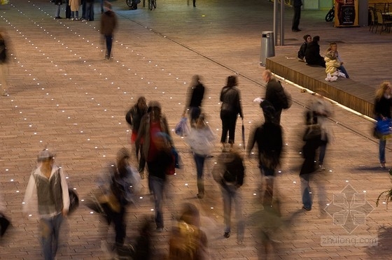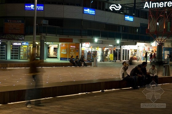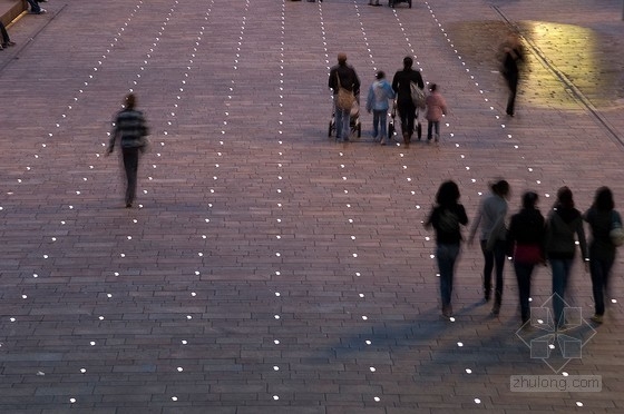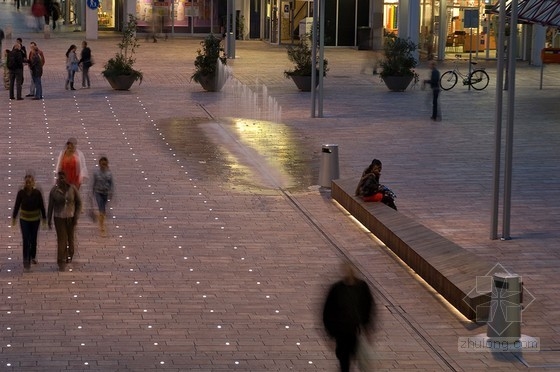 該廣場設計非常簡單,伴隨著路線設計的長座凳、線形排列的地燈,結合水景,為旅客及市民創造了一塊重要的空間。通過景觀建設,加強了公共交通、火車站與城市中心之間的交流。