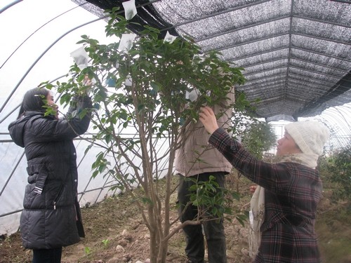 上海植物園科研人員在進(jìn)行茶花育種工作