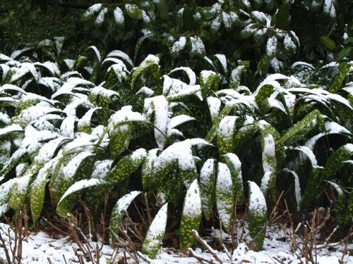 梅花、茶花等許多冬季開花的植物,俏麗的花朵上都覆蓋了層厚厚的冰,麥冬、一葉蘭等地被植物葉片上也堆積著積雪。大自然就是這樣,隨著季節的轉換,春夏秋冬呈現出各自獨特的風貌。雖然由于氣溫高,雪融化得快,到下午已經很少能見到雪花的蹤跡了,不過正月里的雪預示這今年有個好收成,瑞雪兆豐年!
