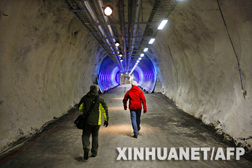 2月24日,在位于挪威北部的斯瓦爾巴群島上,人們在新建成的全球種子庫內參觀。 新華社/法新