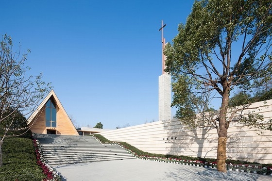 這個教堂位于杭州山水環繞的市郊地帶,房地產商對周邊環境的開發,大大豐富了當地居民的生活。教會由大禮拜堂、一條走廊相連的亭廊、小教堂、圖書館以及一些管理用房組成。教堂的背后是大片的樹林,事務所的設計意圖是通過對特色景觀的捕捉豐富教堂的獨特魅力。