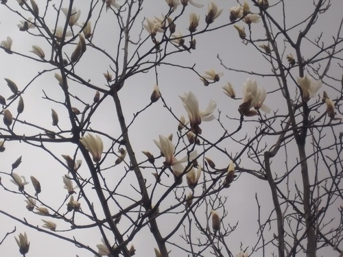 白玉蘭初開展露“嬌容” 申城園林入春在即