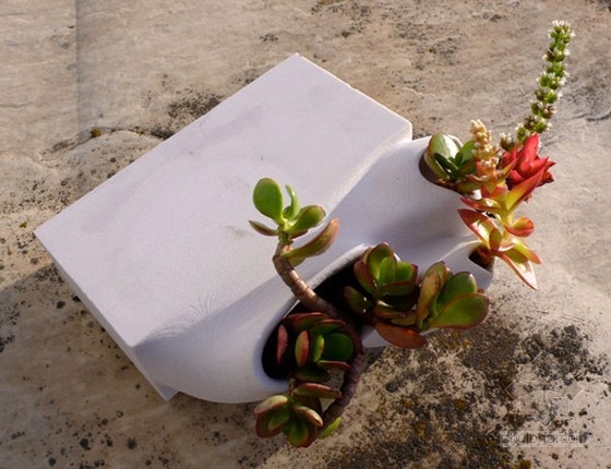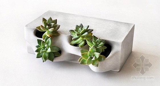 花盆磚石是3D印制的混凝土砌石單位,同時作為種植植物和草本的容器。花盆磚石是由Emerging Objects設計創造的,Rael San Fratello Architects的子公司開始將花盆磚用于環境設計中。這些磚塊是用數字制造和快速三維成型技術直接“印刷”而成的,這是一個較新的加工方法,使得生產不用手工制作或者動用昂貴的機械生產復制。
