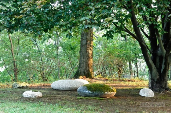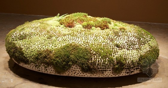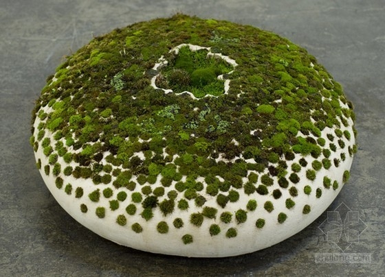 紐約布魯克林的藝術(shù)家、景觀設(shè)計(jì)師Mineo Mizuno,自從去出生地日本進(jìn)行了一次旅行,就開始著手把制陶術(shù)和園藝學(xué)結(jié)合在一起,創(chuàng)造了一種新的藝術(shù)形式。景觀設(shè)計(jì)師Mineo Mizuno結(jié)合自己的釉彩專業(yè)知識(shí),在陶器平整的外形上點(diǎn)綴上了一些小洞洞,種上了植物苔蘚。把這些大塊的、猶如鵝卵石般的陶器放在陰涼處一段時(shí)間,在露水霧氣的影響下,苔蘚會(huì)為這些陶器覆蓋上一層綠色“有機(jī)皮膚”,像傳統(tǒng)陶器上面的釉彩,但其實(shí)是可以調(diào)節(jié)周邊環(huán)境氣溫和濕度的植物。