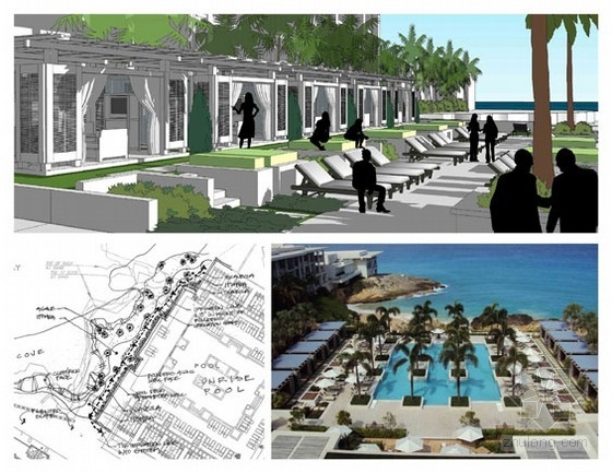 總督安圭拉島是一處位于安圭拉島西海岸的14.2公頃的度假勝地,獨特的地理位置使它擁有得天獨厚的優(yōu)勢,兩塊海灣延伸出近一公里的海岸線。園地內(nèi)外通過開放的步行道無縫的聯(lián)系在了一起,海岸花園不但為水景提供了良好的欣賞條件,也提供了休閑與社交的機(jī)會。場地的繪畫布置與設(shè)計的方式無一不體現(xiàn)了對有限的植物色調(diào)的創(chuàng)意化利用。對總督安哥拉島的贊美之詞不是沒有道理的。這里所體現(xiàn)的度假生活和浪漫體驗在短短的幾年內(nèi)已經(jīng)被無數(shù)人所稱贊,它被冠以加勒比海地區(qū)“旅行的原因”之名,而它也已經(jīng)連續(xù)幾年蟬聯(lián)數(shù)本旅游雜志“最佳旅游勝地”。這些榮譽不僅僅由于這里的服務(wù)與建筑,而很大程度因為這里的基礎(chǔ)設(shè)置與自然景觀。