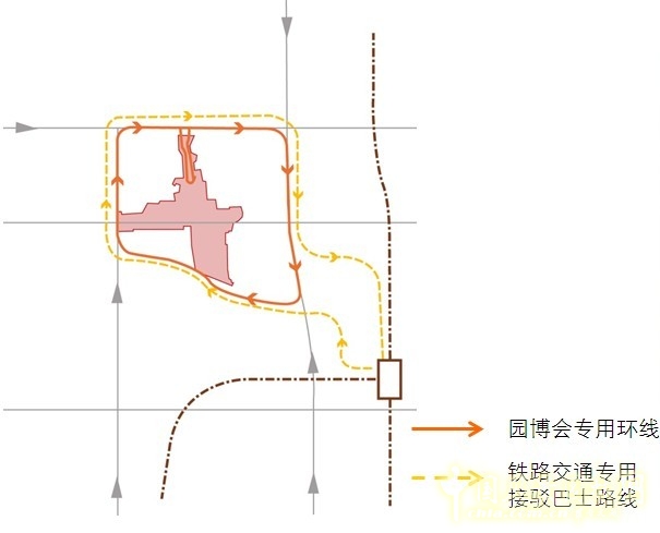 另外我們知道博覽會在瞬時會有大量人流車流的涌入,所以這種盛會的交通組織最好選擇順時單向的原則,這是非常便捷的一種方式。