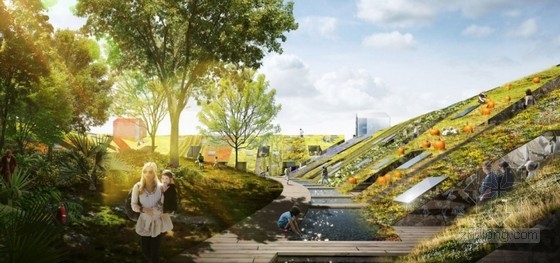克賴斯特徹奇城市中心曾在2011年的地震中幾近損毀,如今它亟待修復。 Zotov& Co 建筑事務所面臨的挑戰正是如何讓一座充滿活力的城市中心獲得重生。在咨詢過如何才能喚醒地震過后的人們的笑顏后,設計師們選擇將“自然”與“溝通”兩種事物作為他們進行設計的概念基礎。該中心所處的島嶼有四分之一被茂密的森林所覆蓋,而它將匯聚所有的社會活動。歷史遺跡附近的區域曾經遍布著生活區,這里包含至少五十個單元。這片區域應該成為郊區充滿吸引力的地方,這里的布置實質上反映的是城市環境。小島的頂部被設計為草原,它將被視為活力之境,這里是毛利語中的“部落”。居民住宅的斜坡屋頂均被開辟為私家花園,旁邊的河流就是私密與開放間的天然屏障。該項目的另一大亮點體現在循環性上。居民種植的作物若有剩余,將會被送進底層的蔬菜店或花店中,有些也將被運到周圍的街區中。雨水將會被收集并被引入公寓中進行經濟利用。當地建筑的墻體均就地取材,用挖地基產生的土壤進行建造,大約一百年之后,它們將逐漸回歸自然。
