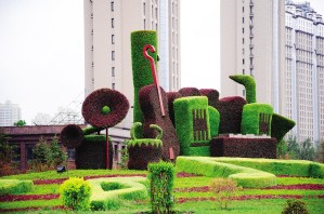例如在黃河路上,龍鳳呈祥、北方園藝街等24處五色草景觀花壇制作精美,同時融會了園林、雕塑、花卉等多種園藝效果,突出表現了鮮明歡快的時代氣息。