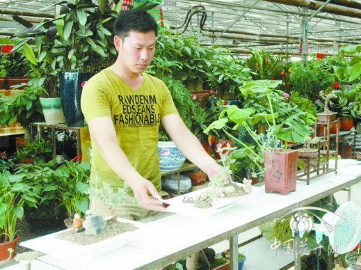 近日,記者在鄭州花市看到,有商戶將盆景的一些技法融入到多肉植物盆栽小品的制作過程中,制作出水旱式、懸崖式、組合式等多種不同類型的小品,自然別致,風格獨特,具有濃郁的中國傳統文化特色,很受歡迎。