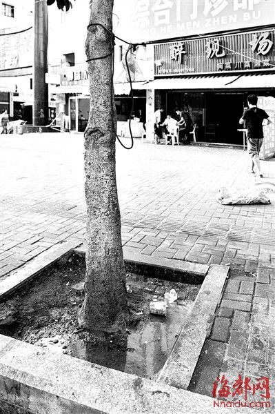 福州市園林執法支隊相關負責人表示,類似行道樹被商家破壞的情況,他們也曾遇到過一些,但大都因為取證難,難以界定。該負責人說:“用油污或者熱水澆灌,破壞了樹木正常的生長。”