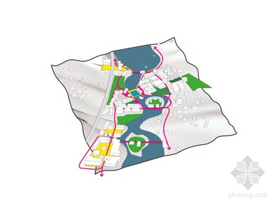 Floda的核心是從Sävelången流向Säveån的河水,這是未來Floda的發展源泉。獲獎作品著重“沿河而下”的概念,開發了水岸最強的特質,公共場所沿河開發,從新將湍急的河流演繹成為自然奇景。該設計建議沿河設定居住區,以打造新的海濱生活。各類型的建筑混合使用,盡可能的創造一個充滿活力的區中心生活、滿足商業和服務活動。
