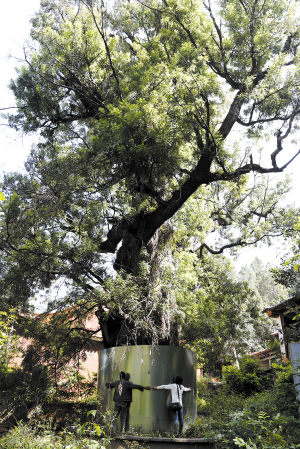 陽宗海龍泉寺,胸徑2.7米的九頭龍樹王,已有1200歲仍枝繁葉茂。 都市時報記者 張悅