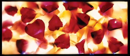 “米奇的玫瑰”(2004),布爾特曼爬上梯子,讓玫瑰花瓣自由掉落在膠片上。