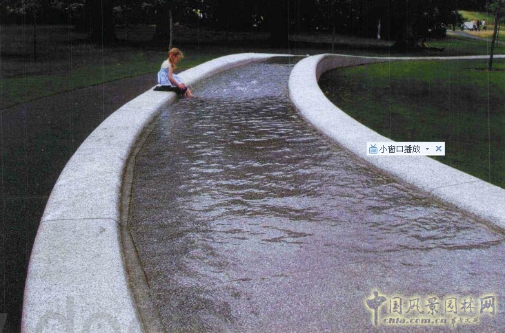 通常情況下,對設計師來講,用圓環的形式來表現水景并不是一種好的方式。而凱瑟琳·古斯塔夫森利用了極對偶原理,解決了物理上與概念上的問題。在由最高處進入水渠后,水流分流向兩個方向,最終在最低處匯合。