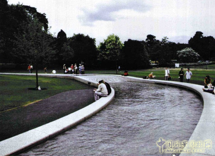 游人一方面可以將其視為休憩的場所,或站或臥或坐于其中,直接感受水的樂趣,另一方面可以視其為一種由水、石材、地形、植物和人構成的景觀雕塑,以各種視角觀賞其絢麗的景觀。