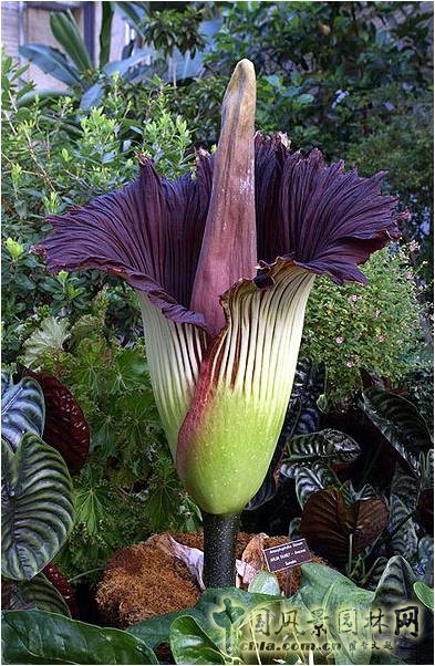 巨花魔芋的花序可以高達三米以上,高度比一個人的身高還高。由于巨花魔芋在開花的時候,會散發一股類似尸臭的味道,因此又有“尸花”的別名。印度尼西亞當地人稱,巨花魔芋正是利用類似尸臭的味道,吸引蠅蟲前來為其授粉。