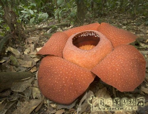 阿諾爾特大花(Rafflesiaarnoldii)又名大王花,號稱世界第一大花。這種寄生性植物有著植物世界最大的花朵,花朵能夠長到直徑三英尺。阿諾爾特大花肉質多,顏色五彩斑斕,上面的斑點使其看上去如青春期孩子們一張長滿粉刺的臉。它具有刺激性腐臭氣味,幸運地是,人們僅能在印尼地區的蘇門答臘島和婆羅洲發現這種寄生植物。這種花的中間有個洞,能夠承起6或7夸脫的水。它無莖無葉無根。