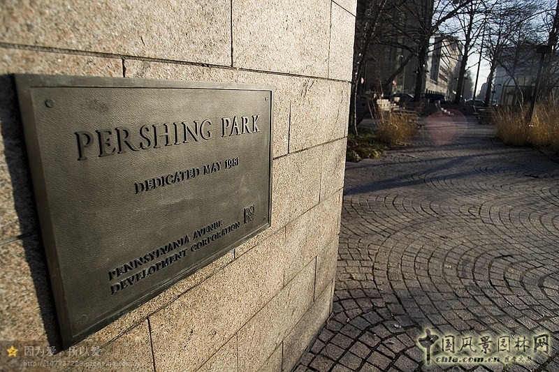 賓西法尼亞大街是美國首都中心的一條主要干道上,國會大廈和白宮分別位于大街的兩端。過去的幾年中,為了使大街更適應其優越的地理位置,政府改善了其整體布局和毗鄰環境。珀欣廣場就是大街改造項目中最初委托完成的項目之一,整個工程是將一組交通道合并創造一個占地約0.8ha的廣場。該場地的設計目的在于創建一個以舉辦不同類型活動的廣場,在以布萊克杰克·珀欣將軍命名的廣場上重新設置紀念碑,從而為公眾創造一個和平、友好的空間。