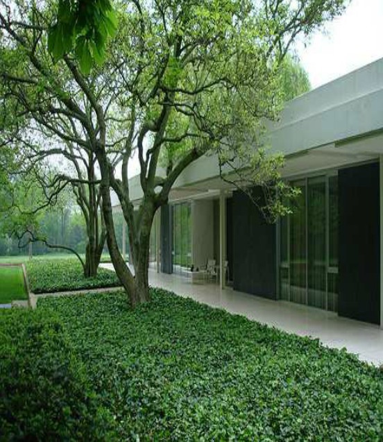 凱利在花園充分利用植物塑造空間,綠籬是墻,林蔭道是自然的廊子,整齊的樹林是一座由許多柱子支撐的敞廳。植物的形態、色彩、枝葉疏密、冠幅大小和季相變化,都是他考慮的要素。由于凱利選擇生活在森林和農田之間(一個距離城市很遠的小村莊),所以他可以不斷的在大自然中尋找靈感,親觀察和感知周圍協調的形式和比例,這一點在米勒花園中得到了充分的展示。