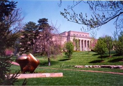 丹·凱利原先還在展覽館南側的平臺中央設計了一個矩形水池,凱利認為水體能夠比園路系統更好的與建筑相協調,水池的水源來自附近的布魯士小溪,水流將雕塑園與當地的自然、文化連成了一體。水池中間的小島上放置了瑞典雕塑家卡爾·米爾斯設計的雕塑,矩形水池周圍自然種植了數棵橡樹。此處設計后來由于某些原因被移走。現在展覽館南側只剩下矩形草坪和兩端的圓形大花壇。