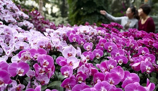 此外,還有4米高的蘭花樹、萬余朵世界名貴少見的“奇蘭”。讓市民在過年期間有一個(gè)溫暖如春的好去處。