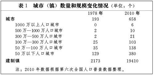 表1 城市(鎮(zhèn))數(shù)量和規(guī)模變化情況