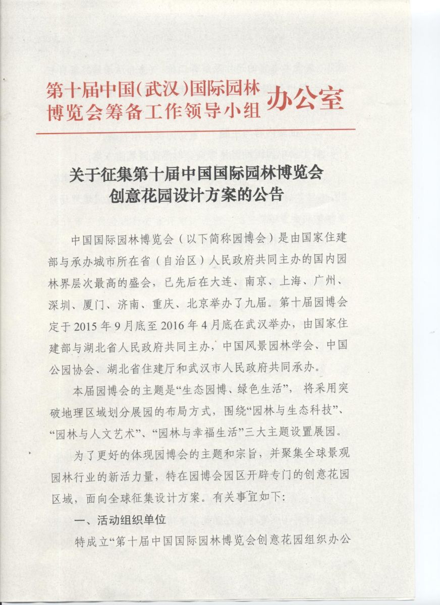 關(guān)于征集第十屆中國國際園林博覽會創(chuàng)意花園設計方案的公告