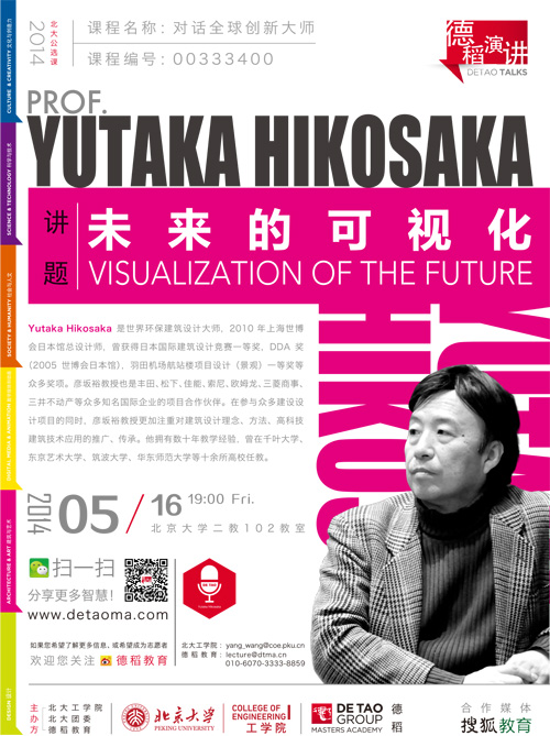 彥坂裕(YutakaHikosaka)是世界環保建筑設計大師,2010年上海世博會日本館總設計師,曾獲得日本國際建筑設計競賽一等獎、DDA獎(2005世博會日本館)、羽田機場航站樓項目設計(景觀)一等獎等眾多獎項。彥坂裕教授也是豐田、松下、佳能、索尼、歐姆龍、三菱商事、三井不動產等眾多知名國際企業的項目合作伙伴。在參與眾多建設設計項目的同時,彥坂裕教授更加注重對建筑設計理念、方法、高科技建筑技術應用的推廣、傳承。他擁有數十年教學經驗,曾在千葉大學、東京藝術大學、筑波大學、華東師范大學等十余所高校任教。