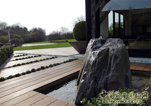 中國(guó)風(fēng)景園林網(wǎng)訊 這個(gè)3000平方英尺的私人花園,坐落在埃塞克斯鄉(xiāng)村距東部邊界1.5英畝的地方,距北倫敦僅僅一個(gè)小時(shí)的車(chē)程。花園的主人是一個(gè)軟件開(kāi)發(fā)師,他建造這個(gè)庭院的想法來(lái)源于對(duì)日本的一次訪問(wèn)。他想重現(xiàn)自己在日本寺廟園林中感受到的那種平靜——植物和巖石、耙的很平整的礫石、水聲。在學(xué)校放假期間他常常帶著全家去日本,他希望自己的花園不僅代表著一個(gè)家,也代表著他的理想與日本古典園林高尚傳統(tǒng)的融合。