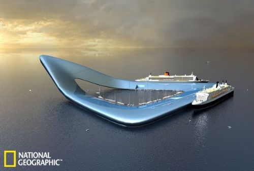 這座面積49萬平米的浮動式游艇碼頭可以停靠3艘大型輪船并讓乘客體驗到一種新奇的離岸享受,美麗的公海酒店,購物,用餐。而一個內部碼頭可以讓較小型的游艇靠泊,并且設計師還讓整個建筑的內部也能擁有良好的自然光采光條件。這一設計的所有者,一個荷蘭團隊稱,整座建筑頂部10%的面積將使用光伏材料鋪設用于發電,從而為建筑提供能源支持。當然目前這一游艇碼頭還只是一個設想,他們的這套方案的設計初衷是用以對抗全球變暖帶來的挑戰和海平面上升,并同時帶給人們更好的生活體驗。
