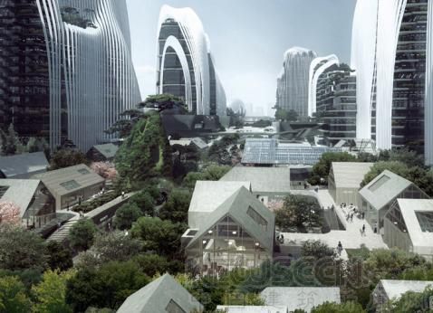 作為本次建筑展中的重要作品,南京喜瑪拉雅中心,采用的建筑概念是中國極具傳統(tǒng)性的“高山流水”。通過高山起伏的縱橫線條、立體垂直的園林綠化和立于建筑之上的磅礴鏡湖,創(chuàng)造了一個(gè)融合而富有生機(jī)的未來城市空間。