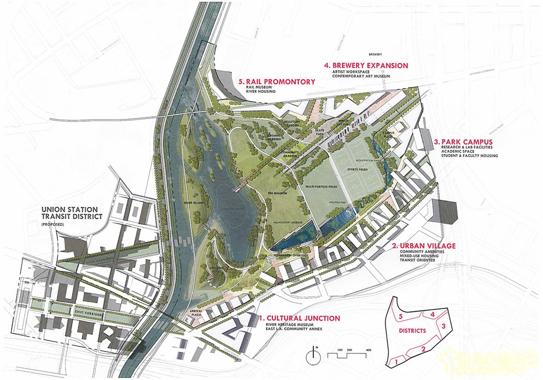 為了讓城市中心更加富有活力,設計者對城市中央的工業用地進行改建以適應大都市的發展需求,這僅僅是進入21世紀城市眾多的改變之一。城市中央空間的核心區意義重大,它是否擁有容納大量城市人口的能力遠比土地修復和開放歷史工業區所承受的負擔要大得多。洛杉磯清楚的意識到,在保護工業區的同時,對于被廢棄的荒地也需要進行更有效的利用。通過清潔廊道等技術的實施,城市正在形成新的工業景觀,以適應城市中居住需求的增長并且形成更加清潔、無害、密集和經濟強健的產業;為科技進步和可持續/再生性能源的研究中心提供支持。