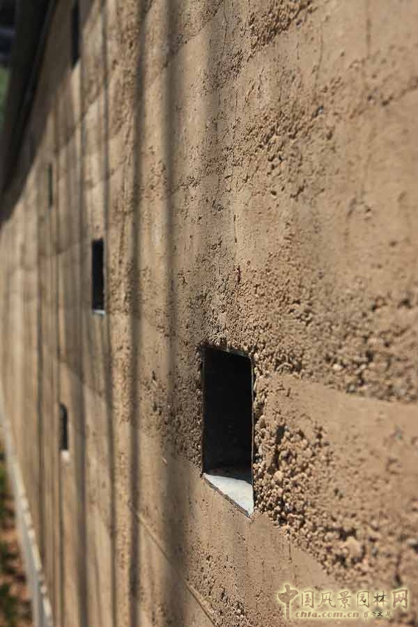 隨著時(shí)間的變遷和時(shí)代的發(fā)展,傳統(tǒng)土生材料的固有缺陷得到了有效克服,現(xiàn)代土生建造技術(shù)已成為當(dāng)今綠色景觀建筑的有效途徑之一。萬(wàn)科大明宮以現(xiàn)代技術(shù)提煉古老的夯土技術(shù),局部修筑夯土墻,致敬歷史文化,營(yíng)造園林古意盎然的年代感和歲月感。