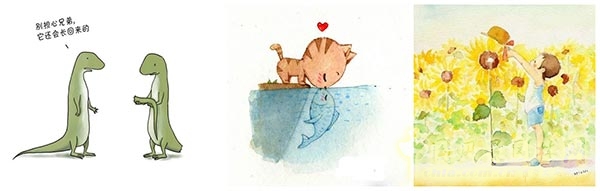反復看這些漫畫,我們不難發現,人們習慣將畫作的目標鎖定在大自然中。動物、植物成為了最佳的擬人化對象,將人類渴望的溫情寄托于其中。不能否認,自然,是最好的“療傷師”,他以明快的色彩和四季更疊的景致,給人以正能量和生命力。