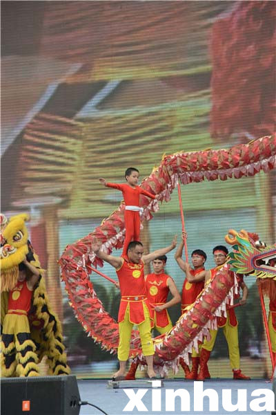 9月26日,黃石首屆園博會開幕式前舞龍舞獅表演