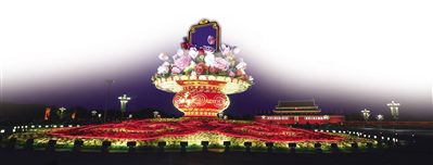為迎接中華人民共和國成立66周年,天安門廣場布置的主題為“祝福祖國”大型花籃造型花壇正在進行緊張施工,大型花朵已被插裝在大型籃盤內,籃體也已制作完成等待“合體”。【詳細】