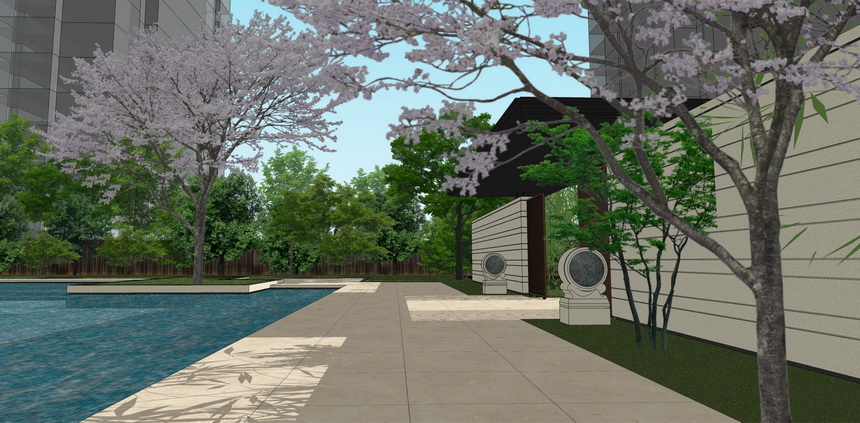 本案為中高端改善型住宅景觀項目,景觀設計風格采用現代東方主義的設計特點,在滿足各種使用功能基礎上,重視居住的精神和心理需求,為居民放松、休憩、活動和交往提供了有益的空間。