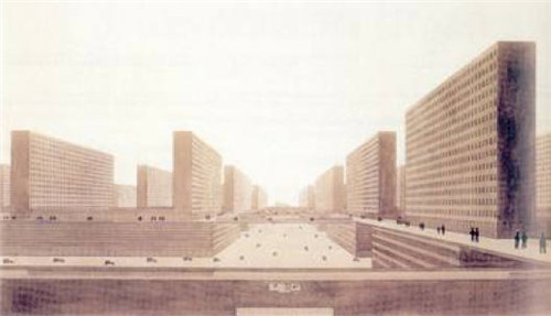 柯布西耶不喜歡街道,因?yàn)榻值朗呛芏喙δ艿幕旌希凶》俊⒔值馈?shù)木、管道、商業(yè)等等都擺到了一起。所以他在進(jìn)行城市規(guī)劃時(shí),像工業(yè)化的生產(chǎn)學(xué)習(xí),將區(qū)域按照按照不同功能完全明確分隔開(kāi)來(lái),產(chǎn)生了辦公、住宅、商業(yè)、教學(xué)、體育等多種功能區(qū)。