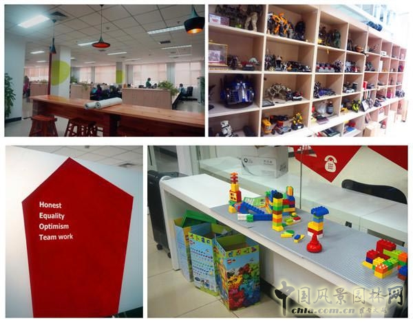 推開玻璃門,木質吧臺、藝術感吊燈、隨處可見的理念標語、圖書豐富的資料室,還有極富童趣、激發設計師無限靈感的樂高玩具,以及那擺滿了珍藏版變形金剛的辦公室……由楊先生熱情地帶我們參觀了優地聯合的辦公環境,藝術、活力又充滿人性化,是這里留給我們的印象。