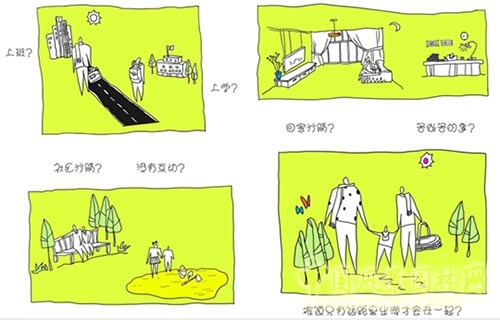 為什么會有這個想法設計?是因為通過分析,我們發現,早上,家長和兒童上班上學會分開,下午下班也沒有共處的時間,即使有時間在花園中玩耍,兒童的玩耍空間和家長的休息空間也是分開的,唯一相處的機會只有在旅游的時候。