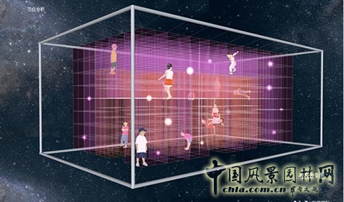 另一個靈感來源于星空。通過空間設計的變化,把游戲和活動更好的融入設計當中。起初的構想,是運用彩虹色系的小品和場所的運動功能進行結合,進而引申到星空的空間構造,利用內部形態特點,供兒童自由活動。