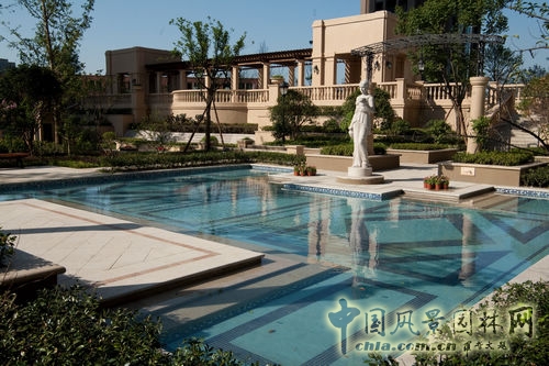 下沉泳池莊重大氣,在周圍樓宇之間顯露出一種現(xiàn)代氣息