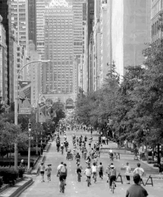 “夏季街道”是一個紐約交通局的項目,在數個周末期間指定一些路線暫時對機動車關閉,僅供步行、自行車交通以及跑步與健身活動使用。圖為公園大街