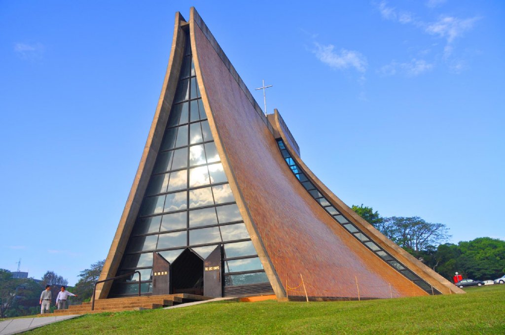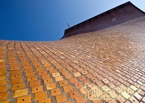 4)玻璃面磚:教堂屋面外部覆貼琉璃瓦,用以保護水泥屋面,防水兼去垢。玻璃用茶色防熱玻璃,以免日曬及反光。面磚的形狀最后選定為菱形,因為菱形較易于適合曲面的鋪設,同時又與內部格子梁走向相同。